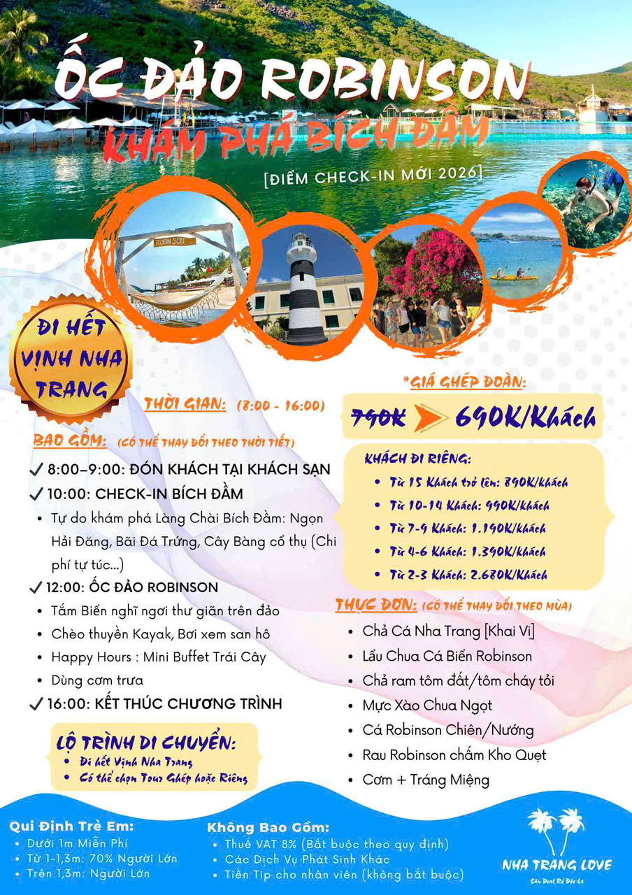 Tuy nhiên, để chuyến đi thực sự trọn vẹn, bạn nên kết hợp thêm Đảo Robinson Nha Trang – vừa khám phá, vừa nghỉ dưỡng đúng nghĩa.