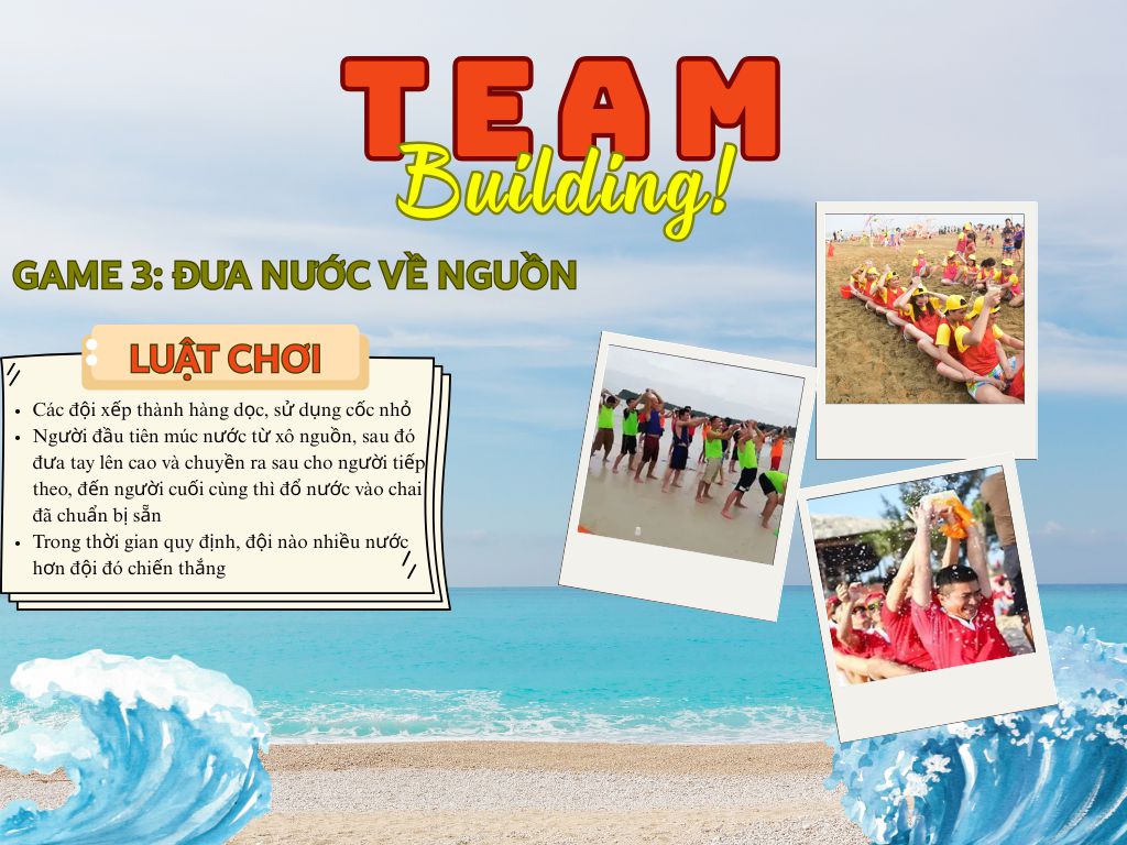 Team building – hiểu đơn giản là xây dựng đội nhóm – là chuỗi các hoạt động mang tính tương tác, phối hợp và thử thách, thường được tổ chức tại bãi biển, resort, khu du lịch hoặc các không gian thiên nhiên.